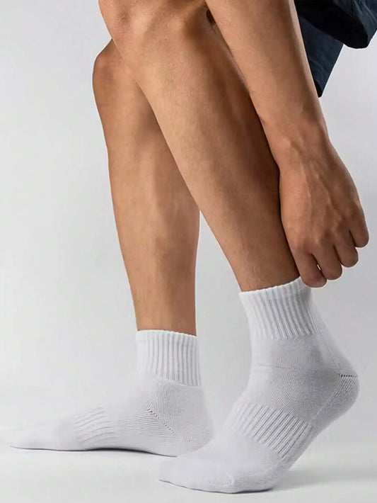 Lot de 5 paires de chaussettes de sport anti-odeurs mi-mollet blanches pour hommes pour l'été