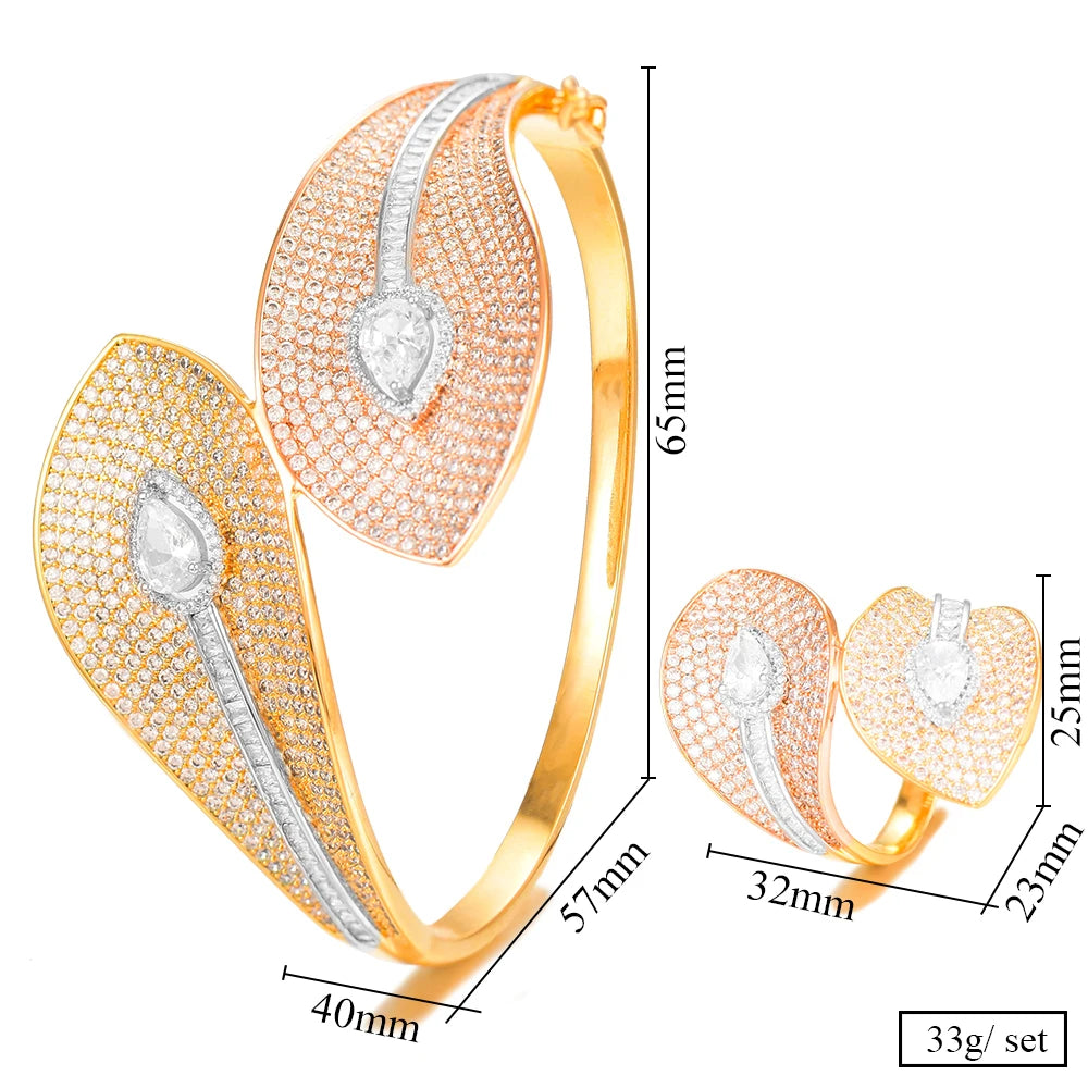 Spain Snake Leaf Bangle Ring Jewelry Set For Women